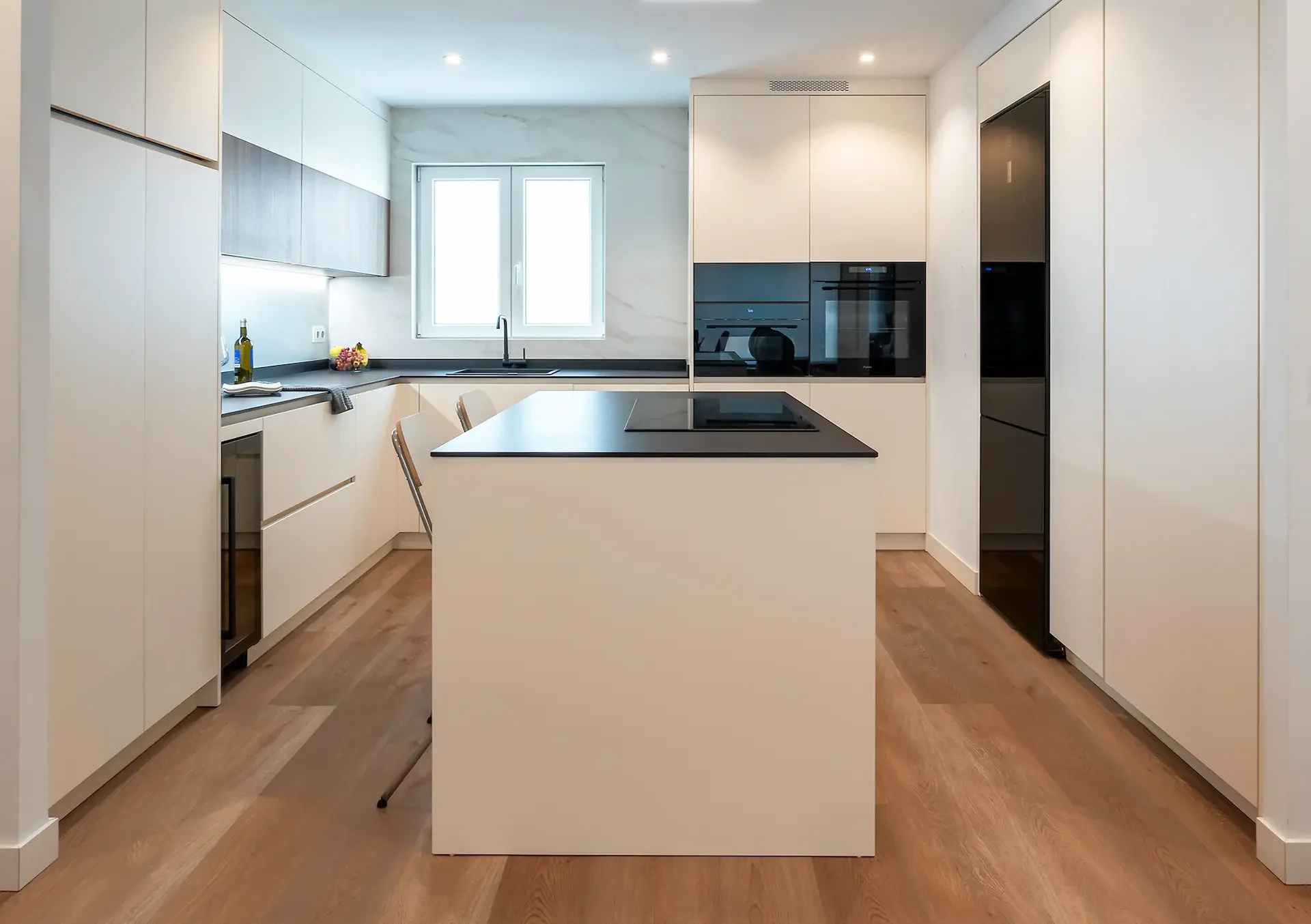 Además de su funcionalidad, la isla aporta un gran valor estético como pieza protagonista del espacio. En nuestros proyectos de cocinas en Cantabria, cuidamos proporciones, almacenaje e iluminación para que la isla sea práctica y un lugar perfecto para convivir.