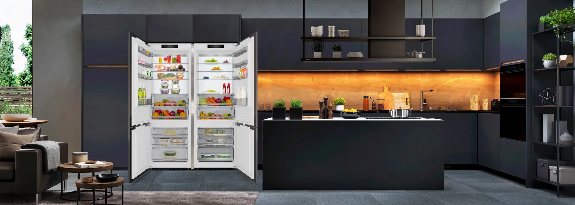 Miele es sinónimo de precisión, durabilidad y eficiencia. Aunque no emplea la denominación «XL», su gama de frigoríficos integrables ofrece soluciones con una excelente relación entre capacidad y consumo, sin comprometer la integración visual: